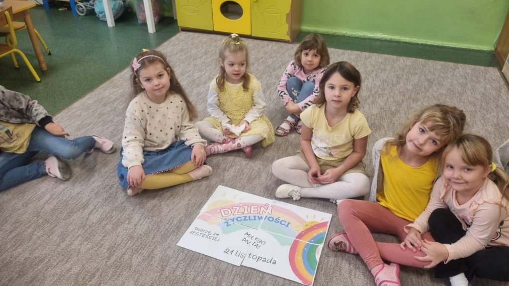 W naszym przedszkolu 21 listopada obchodziliśmy Dzień Życzliwości – wyjątkowe święto przypominające, jak ważne są miłe słowa, uśmiech i pomoc innym. Dzieci uczestniczyły w rozmowach o tym, czym jest życzliwość, brały udział w zabawach integracyjnych.