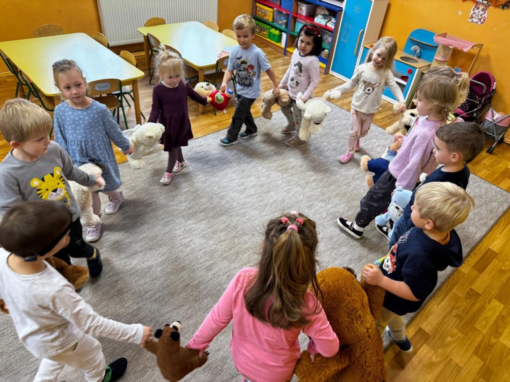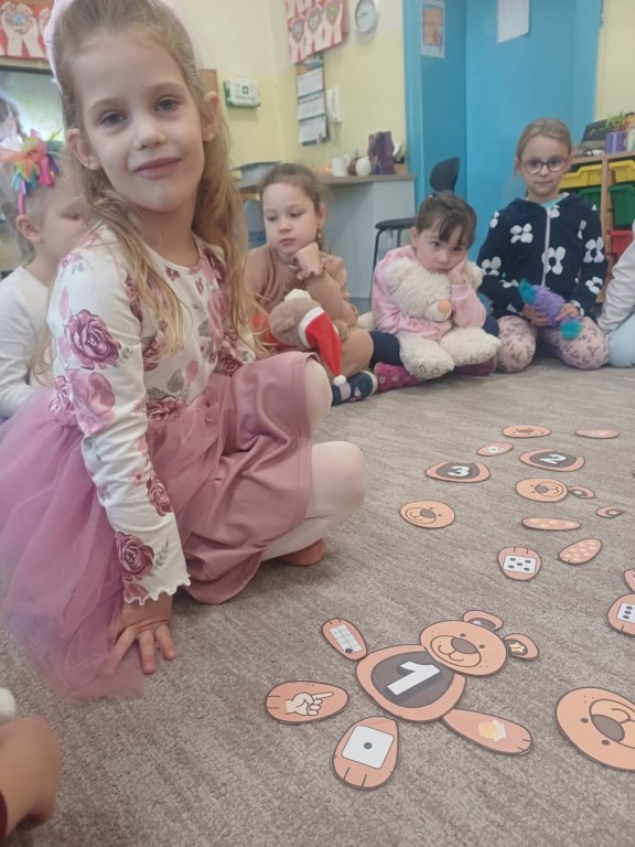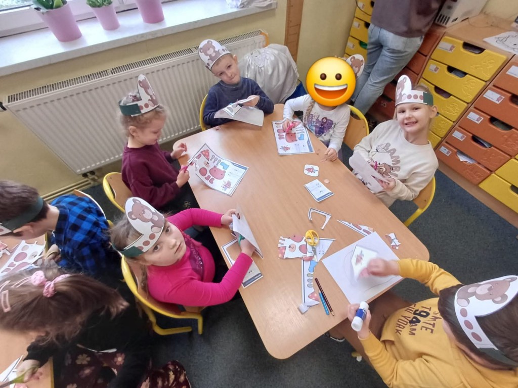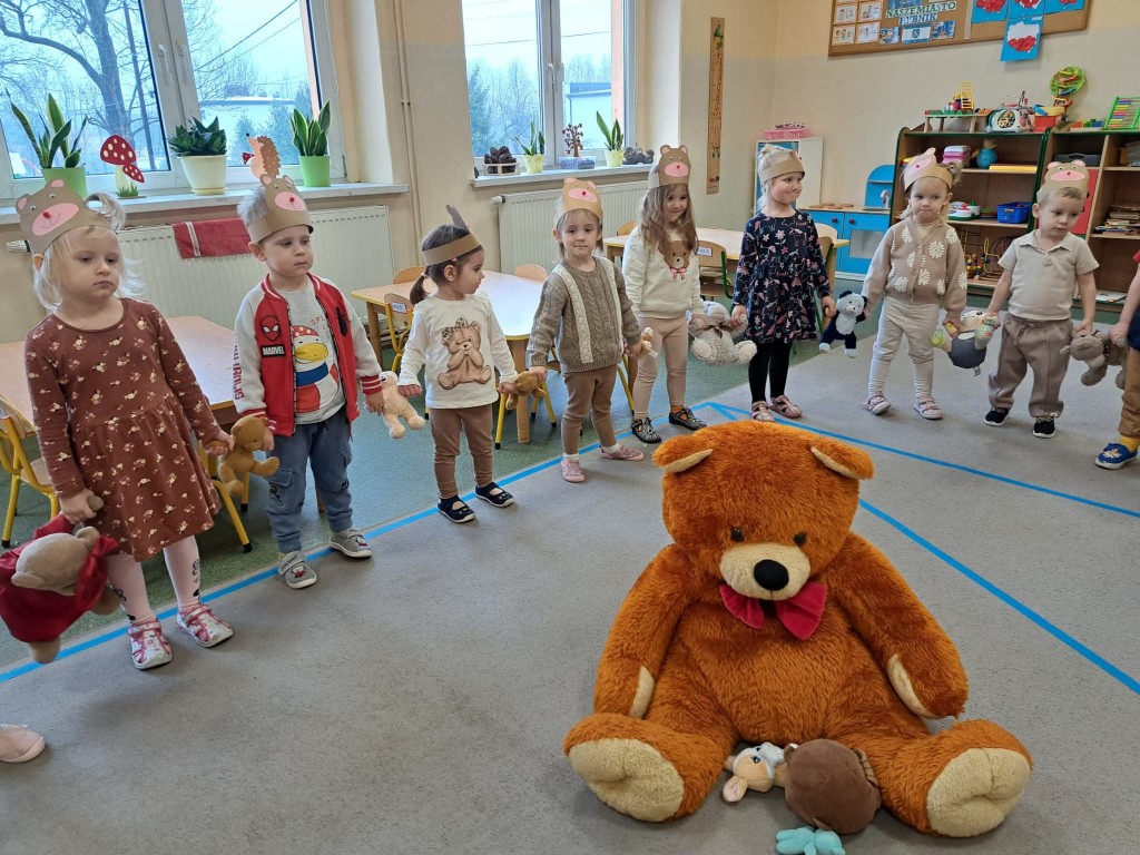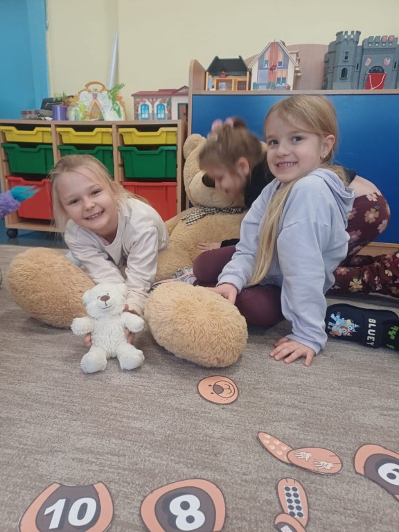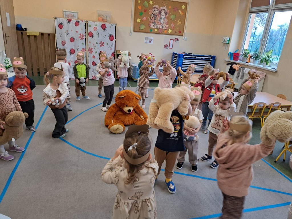 Nie zabrakło misiowych zabaw — były taneczne pląsy, „misiowa gimnastyka”, oraz zadania ruchowe z pluszakami. Dzieci bardzo polubiły także „misiowe warsztaty”, podczas których wykonały kolorowe prace plastyczne.