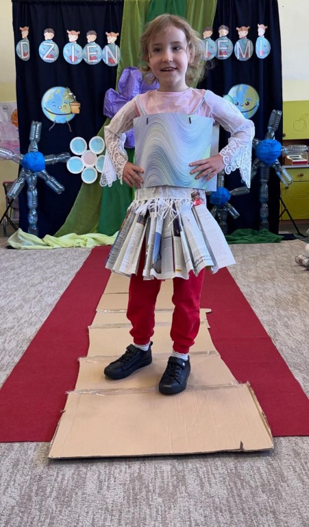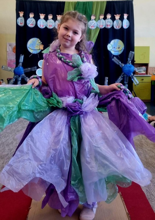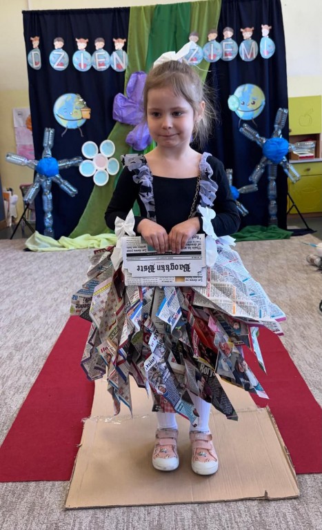 Dzieci zaprezentowały niesamowite stroje wykonane z materiałów przeznaczonych do ponownego wykorzystania – były suknie z gazet, peleryny z worków foliowych i wiele innych kreatywnych pomysłów. ♻️